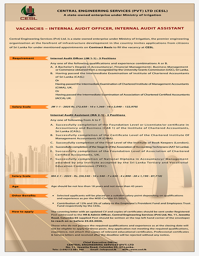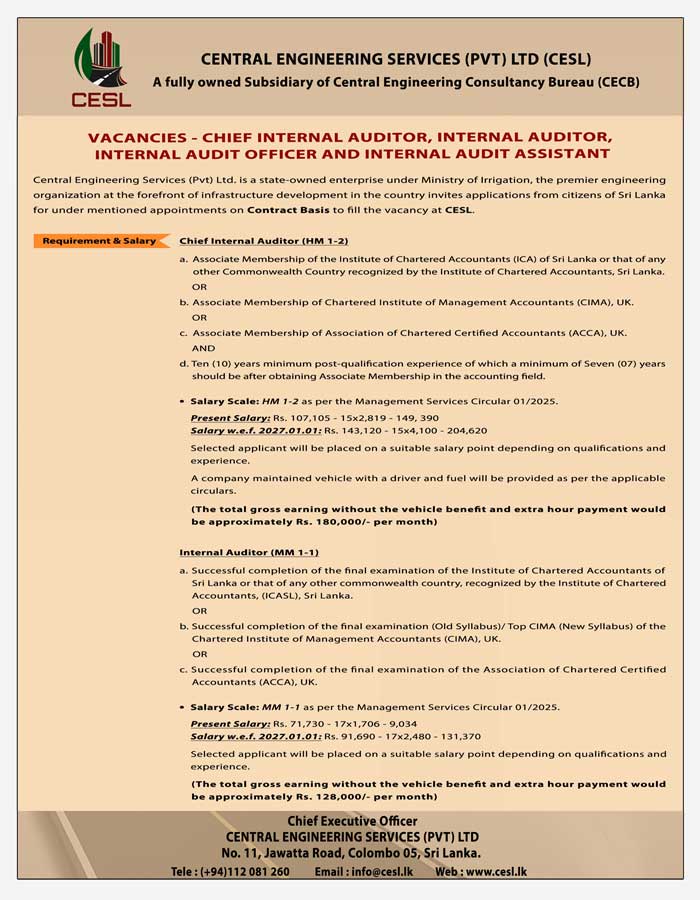Chief Internal Auditor, Internal Auditor, Internal Audit Officer and Internal Audit Assistant