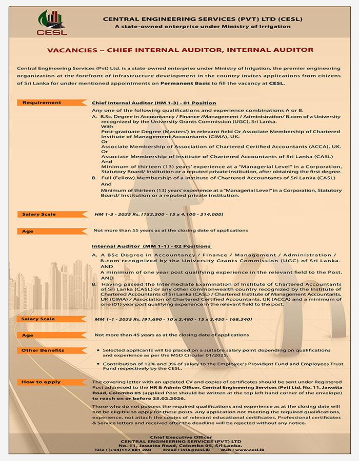 Chief Internal Auditor, Internal Auditor, Internal Audit Officer and Internal Audit Assistant