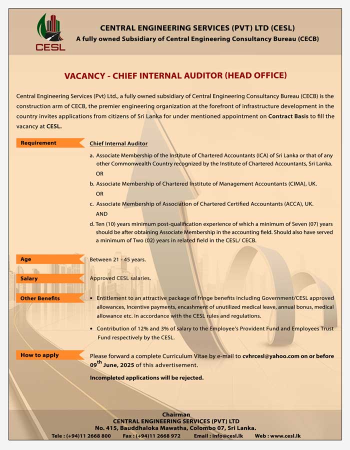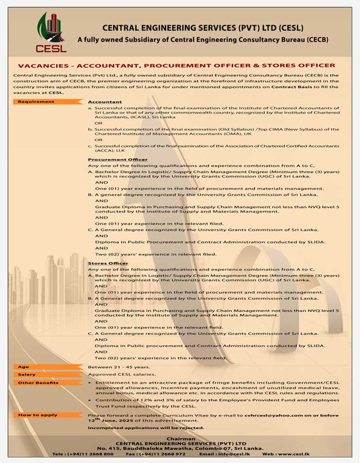 Accountant (Galle), Account Assistant (Kilinochchi)